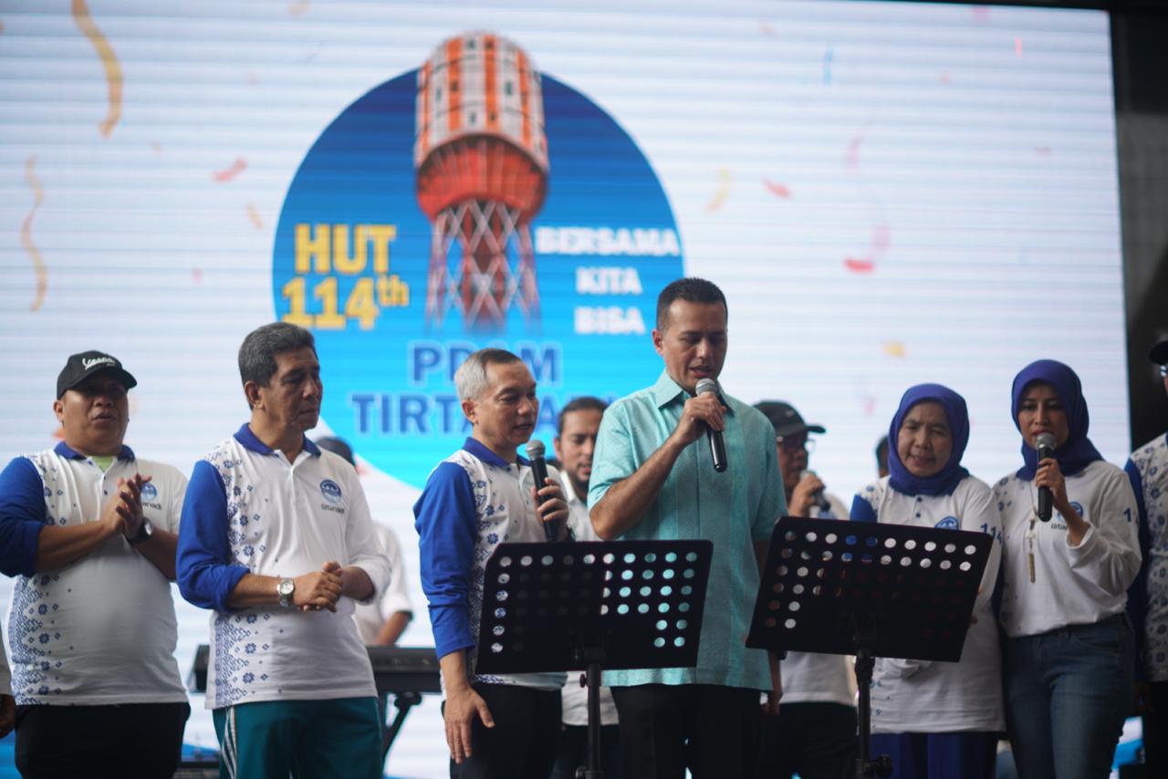 Kegiatan HUT ke 114 kali ini mengambil tema bersama kita bisa, selain dihadiri oleh Wakil Gubernur Sumut, Musa Rajekshah, turut hadir Ketua Dewan Pengawas Sabrina, Sekretaris Dewan Pengawas Ikbal Hasibuan, Anggota Dewan Pengawas Hilmi, Direktur Utama Trisno Sumantri, Direktur Air Limbah Fauzan, Direktur Air Minum Joni Mulyadi, Direktur Administrasi dan Keuangan Feby Milani, dan diikuti oleh ribuan keluarga pegawai, haonorer, dan Buruh Harian Lepas (BHL)
