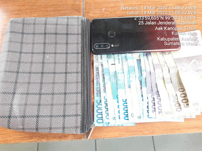 " Saat dilakukan penggeledahan badan, ditemukan satu unit hand phone android vivo warna biru, uang sebanyak 490.000.- Rupiah serta satu buah tas kecil warna petak - petak " jelas Kapolsek.
